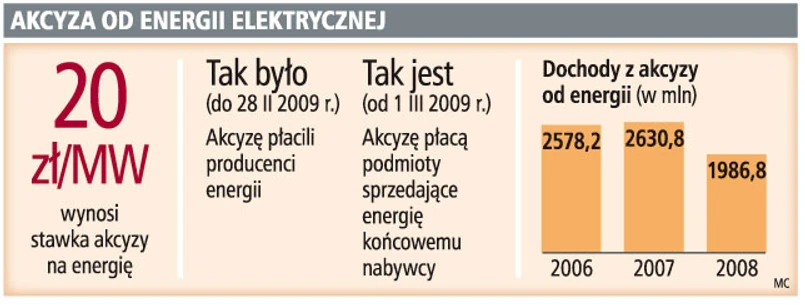W sądach trwa batalia producentów energii o odzyskanie akcyzy, którą zapłacili w okresie od 1 stycznia 2006 r. do 28 lutego 2009 r. Zgodnie z wyrokiem Europejskiego Trybunału Sprawiedliwości z 12 lutego 2009 r. (C-475/07) oraz uchwałą Naczelnego Sądu Administracyjnego z 13 lipca 2009 r. (sygn. akt I FPS 4/09) przez trzy lata w Polsce akcyzę od energii, zamiast płacić dystrybutorzy, płacili jej producenci. Jeśli producenci otrzymają zwrot akcyzy, firmy, które ją zapłaciły, będą mogły odzyskać akcyzę od producentów.