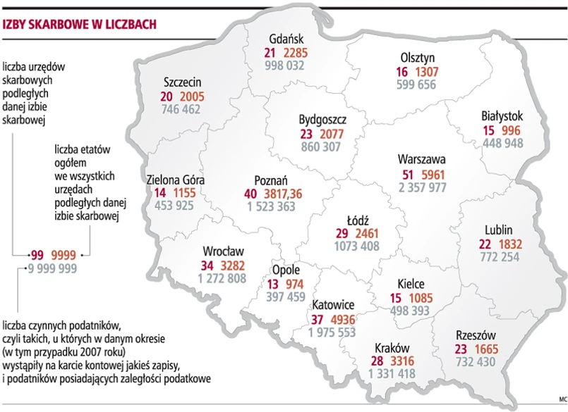 Najbardziej skutecznym wyspecjalizowanym urzędem skarbowym został Pierwszy Wielkopolski Urząd Skarbowy w Poznaniu. Wśród dużych urzędów pierwsze miejsce zajął Urząd Skarbowy w Koninie. Duża rywalizacja była w średnich urzędach skarbowych. Tu urzędów, które się nie mylą (są najbardziej efektywne), na pierwszym miejscu - czyli z taką samą liczbą punktów - jest aż osiem - w: Żyrardowie, Wolsztynie, Ząbkowicach Śląskich, Nowym Tomyślu, Kozienicach, Myśliborzu, Białogardzie i Kołobrzegu. Podobnie jest z małymi urzędami. Pierwsze miejsce przypadło pięciu urzędom w: Radziejowie, Kazimierzy Wielkiej, Polkowicach, Wąbrzeźnie, Chełmnie.