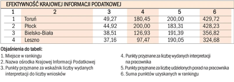 Ocena w drugiej kategorii oparta była na nieco innym założeniu. Maksymalną liczbę punktów mogła otrzymać tylko taka izba, która może pochwalić się tym, że ani jedna jej decyzja nie została uchylona. W tegorocznym rankingu izba taka się znalazła. Jest nią Izba Skarbowa w Łodzi. Pozostałe izby otrzymywały proporcjonalnie mniej punktów w takim stosunku, w jakim ich wynik był gorszy od idealnego.