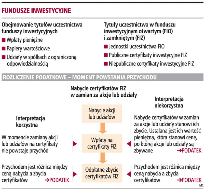 Nie tylko zbycie tytułów uczestnictwa funduszu inwestycyjnego jest opodatkowane. Przychodem może być też samo nabycie certyfikatów w zamian za papiery wartościowe. Organy podatkowe coraz częściej stosują niekorzystną dla podatnika interpretację.