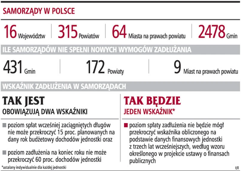 Nowy wskaźnik zadłużenia będzie dla wielu samorządów niekorzystny. Jednostki o słabych wynikach finansowych nie będą mogły się zadłużać. Samorządy będą miały jednak trzy lata na przygotowanie się do tych zmian