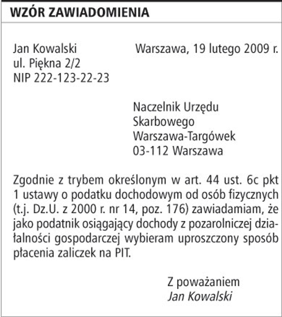 - Przepisy określają jedynie, że zawiadomienie takie powinno zostać sporządzone na piśmie, a zatem oświadczenie podatnika nie musi być składane na żadnym określonym druku urzędowym, można je sporządzić samemu - mówi Marcin Sikora, doradca podatkowy w Kancelarii Sikora i Wspólnicy.