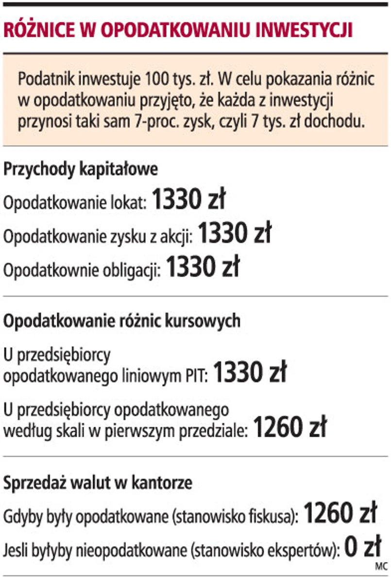 Zdaniem ekspertów sytuacja jest jasna w przypadku podatników prowadzących działalność gospodarczą i dokonujących takich transakcji. Przedsiębiorcy uzyskują dochód z różnic kursowych, który podlega opodatkowaniu. Sprawa się komplikuje, gdy zarobkiem na wymianie walut zajmują się podatnicy, którzy działalności gospodarczej nie prowadzą. W tym przypadku ustawodawca nie wymienia wprost w ustawie o PIT przychodów z tytułu różnic kursowych.