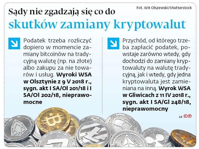 Obecnie jest to jeden z głównych problemów podatkowych związanych z e-walutami – jak obliczyć dochód z zamiany. W sądach podatnicy spierają się z fiskusem o to, czy w przypadku zamiany kryptowalut w ogóle można mówić o przychodzie.