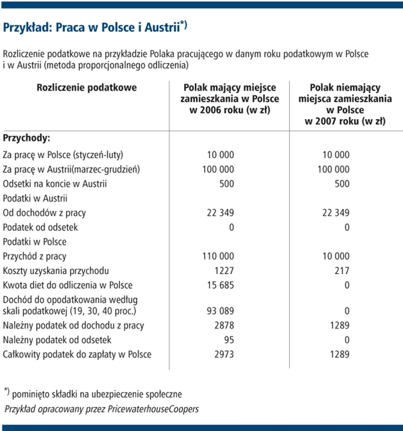 Zdaniem ekspertów PricewaterhouseCoopers, aby nie płacić podatku od zagranicznych dochodów w sytuacji, gdy naszym głównym źródłem dochodów będzie praca za granicą, wystarczające będzie wyjechanie z Polski przed upływem 183 dni i zabranie ze sobą rodziny. Wtedy zasadniczo miejsce zamieszkania i centrum interesów życiowych zostanie przeniesione za granicę. W konsekwencji osoba, która w danym roku będzie zarabiać tylko poza krajem, nie będzie już musiała rozliczać się z polskim fiskusem.