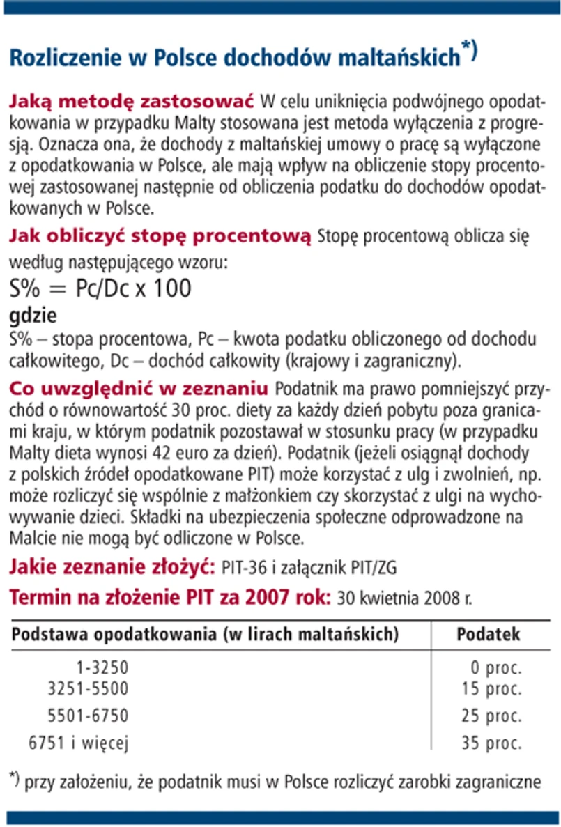 Polak, który podejmie pracę na Malcie i dopełni obowiązków rejestracyjnych, nabędzie prawo do opodatkowania swoich dochodów z zastosowaniem preferencyjnej, 15-proc. liniowej stawki podatkowej.