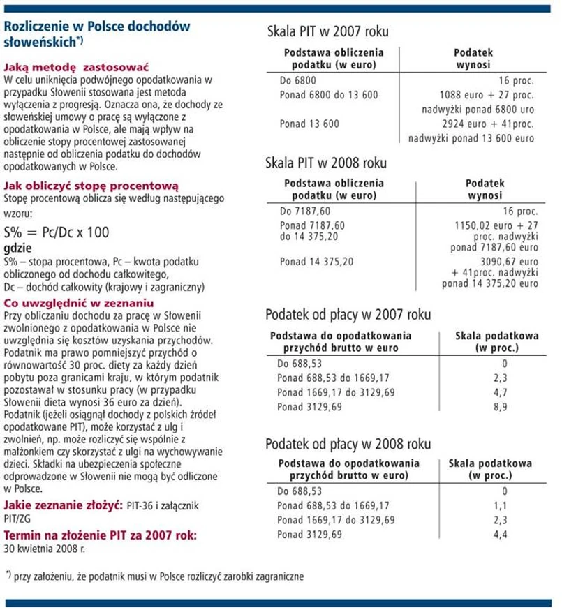 - Dodatkowo od dochodu odlicza się składki na obowiązkowe ubezpieczenie społeczne (część pracownika). Jednocześnie trzeba pamiętać, że dochód Polaka za pracę wykonywaną przez niego na terytorium Słowenii będzie zwolniony ze składek do słoweńskiego systemu ubezpieczeniowego jedynie w sytuacji, gdy będzie on posiadał certyfikat E101 lub E102 wydany na czas jego pracy na terytorium Słowenii przez polskie władze ubezpieczeniowe - stwierdza Joanna Narkiewicz-Tarłowska.