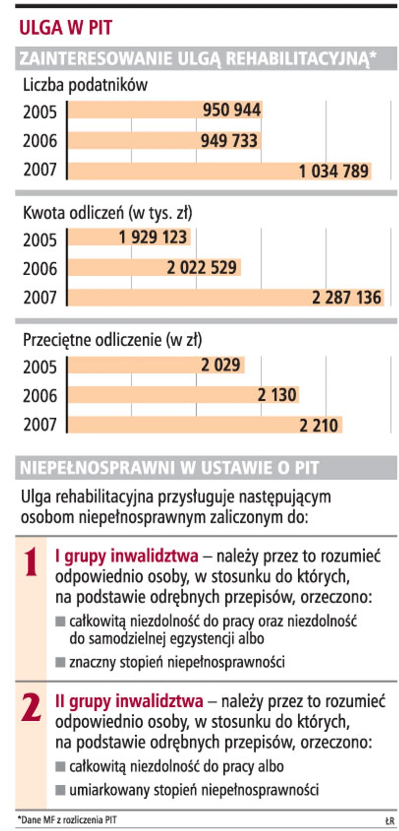 Polityka fiskalna powinna brać pod uwagę szczególną sytuację niektórych obywateli. Na ten aspekt zwraca uwagę Hanna Czogalla, starszy konsultant w Grant Thornton Frąckowiak, która stwierdza, że niepełnosprawni są bezsprzecznie grupą społeczną, której państwo powinno zabezpieczyć szczególne środki pomocy, choćby takie jak ulgi podatkowe. Artykuł 26 ust. 7a ustawy o PIT zawiera katalog wydatków na cele rehabilitacyjne oraz wydatków związanych z ułatwieniem wykonywania czynności życiowych, o które osoba niepełnosprawna lub osoba, na której utrzymaniu znajduje się osoba niepełnosprawna, może pomniejszyć dochód w roku podatkowym. Jest to ulga podmiotowa, adresowana do ściśle ograniczonego grona podatników.