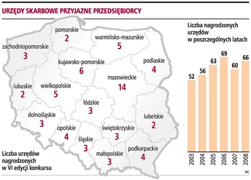 Laureatami VI edycji konkursu Urząd Skarbowy Przyjazny Przedsiębiorcy zostało 66 urzędów. To o sześć więcej niż w ubiegłorocznej edycji konkursu.