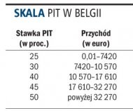 Osoby fizyczne rozliczają się z belgijskim fiskusem według progresywnej skali podatkowej. Stawki PIT obowiązują w stosunku do dochodów osiągniętych przez osoby fizyczne będące rezydentami i jednocześnie nie obejmują podatków miejskich (lokalnych). Podstawą opodatkowania u osób fizycznych niebędących rezydentami są tylko dochody osiągane ze źródeł w Belgii. Nierezydenci płacą dodatkowo 7 proc. podatku od całości dochodów osiąganych w Belgii.
