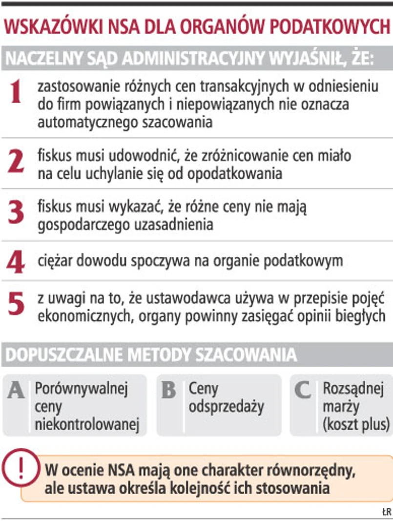 Spółki, które podpisują umowy zarówno z niezależnymi kontrahentami, jak i firmami powiązanymi, często mają problemy z fiskusem. Powodem jest zarzut, że w stosunku do należących do grupy podmiotów stosują korzystniejsze zasady rozliczeń transakcji niż w stosunku do firm obcych. Jeżeli różnice w cenach są niewielkie, najczęściej fiskus nie reaguje, mówią eksperci. Jednak gdy ceny różnią się znacznie, zaczyna się walka o oszacowanie dochodu. W takiej sytuacji organ automatycznie uznaje, że za podstawę opodatkowania można przyjąć nie to, co spółka faktycznie zarobiła, ale co mogłaby zarobić, gdyby stosowała takie same warunki dla wszystkich. W ocenie ekspertów to zła praktyka. Ostatnio potwierdził to też NSA.