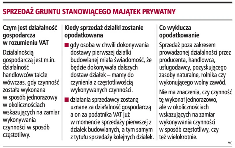 Wyrok Naczelnego Sądu Administracyjnego (z 29 października 2007 r., sygn. akt I FPS 3/07, niepublikowany), podjęty w poszerzonym, siedmioosobowym składzie, miał ostatecznie rozstrzygnąć sprawę opodatkowania VAT sprzedaży działek z majątku prywatnego. Okazuje się jednak, że sprawa nie jest taka prosta, a każda transakcja będzie oceniana indywidualnie.