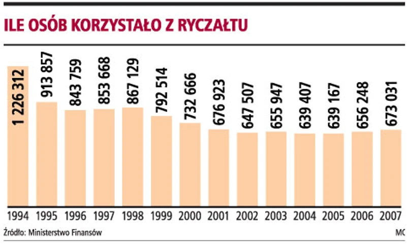 Ryczałt należny za 2007 rok wyniósł ponad 1,87 mld zł. Ryczałtowcy musieli dopłacić fiskusowi ponad 342,62 mln zł. Odzyskali w formie nadpłaty nieco ponad 50,3 mln zł.