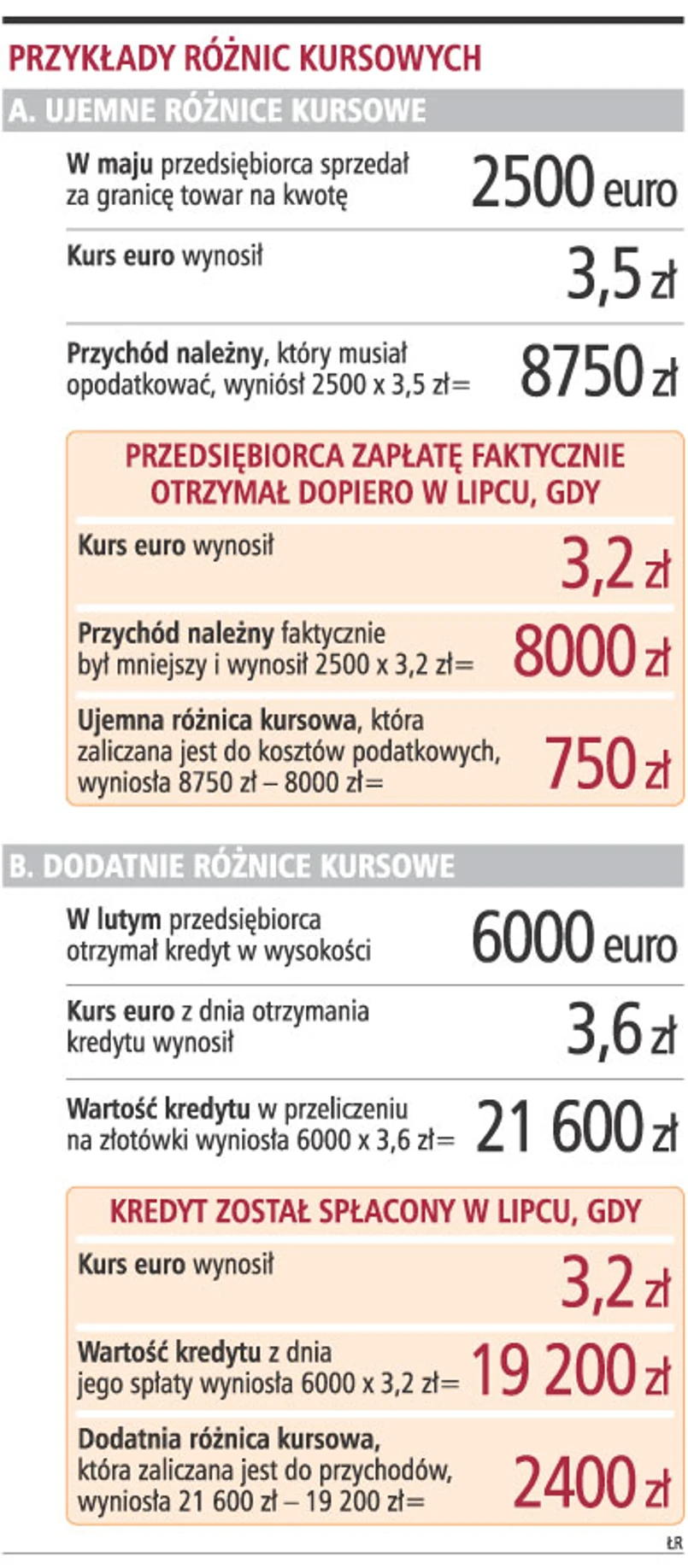 - W przypadku należności sytuacja jest odwrotna. Faktycznie otrzymane przychody ze sprzedaży za granicę są mniejsze niż przychody zafakturowane - wskazuje ekspert. Jeśli zatem podatnik np. 3 miesiące temu wystawił fakturę na 1 tys. euro, to z tego tytułu powstał u niego przychód w wysokości np. 3,5 tys. zł (przy kursie 3,5 zł). Jeśli w lipcu otrzyma zapłatę, to faktycznie 1 tys. euro będzie już warte 3,2 tys. zł.