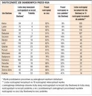Przedstawione wyliczenia pokazują ponadto, że białostocka Izba Skarbowa, uzyskując świetny wynik 91 proc. skuteczności przed NSA, sporo traci w rankingu podsumowującym, uzyskując zaledwie 60 proc. skuteczności przed WSA. Odwrotna sytuacja występuje w rzeszowskiej Izbie Skarbowej, której wynik 80 proc. skuteczności przed WSA zaniżany jest 68-proc. skutecznością przed NSA.