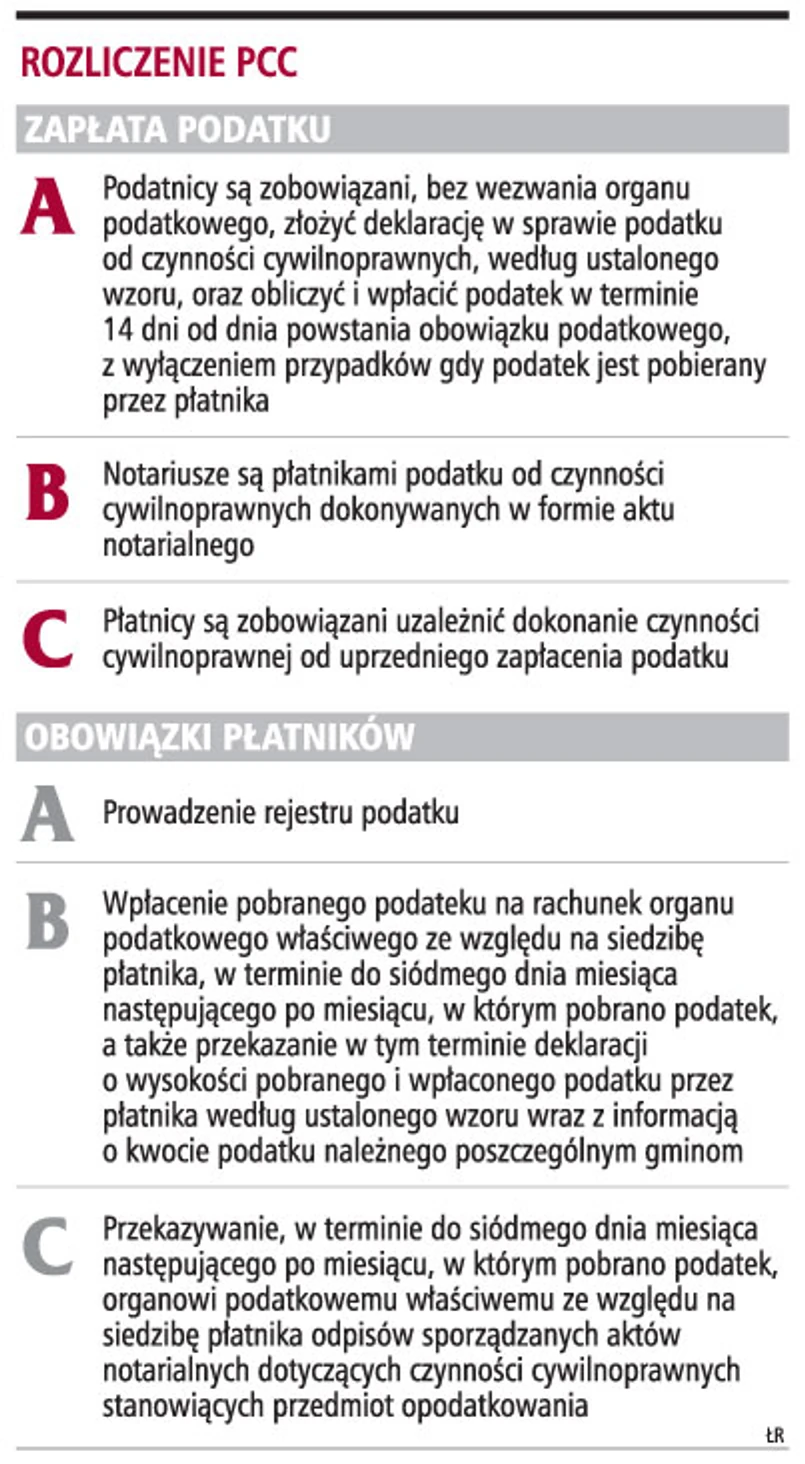Notariusze przekazują organowi podatkowemu właściwemu według miejsca ich siedziby w terminie do siódmego dnia każdego miesiąca wypisy sporządzonych w poprzednim miesiącu aktów notarialnych dokumentujących czynności prawne podlegające przepisom ustawy o podatku od spadków i darowizn oraz ustawy o podatku od czynności cywilnoprawnych, a także zarejestrowanych aktów poświadczenia dziedziczenia, które mogą spowodować powstanie zobowiązania podatkowego - czyli większości aktów notarialnych. Na ten aspekt zwraca uwagę Łucja Kalisz, notariusz w Kancelarii Notarialnej w Warszawie, która wyjaśnia nam, że notariusze wysyłają wypisy aktów notarialnych w formie papierowej.