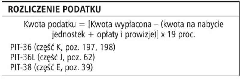 Dochody, których źródłem są fundusze kapitałowe, w tym zagraniczne fundusze inwestycyjne, na podstawie ustawy o PIT (t.j. Dz.U. z 2000 r. nr 14, poz. 176 z późn. zm.) są obciążone 19-proc. podatkiem. W przypadku uczestnictwa w funduszach zarządzanych przez polskie towarzystwa to one naliczają i odprowadzają właściwy podatek. Uczestnik otrzymuje do dyspozycji kwoty już opodatkowane i nie wykazuje ich w zeznaniu rocznym.
