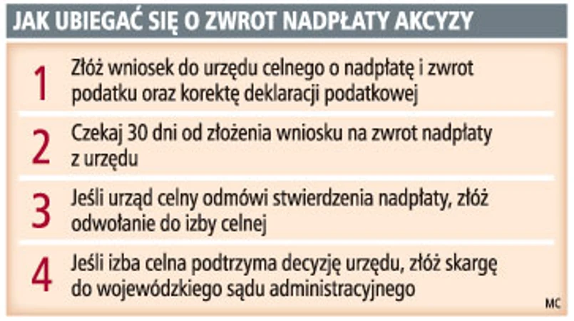 Po ostatniej uchwale Naczelnego Sądu Administracyjnego (sygn. akt I FPS 4/09) producenci energii elektrycznej mogą występować o zwrot podatku za poszczególne miesiące w okresie od 1 stycznia 2006 r. do 28 lutego 2009 r. W tym celu należy złożyć wniosek o stwierdzenie i zwrot nadpłaty podatku akcyzowego. Producenci muszą w nim udowodnić, że przysługuje im zwrot nienależnie pobranego podatku.