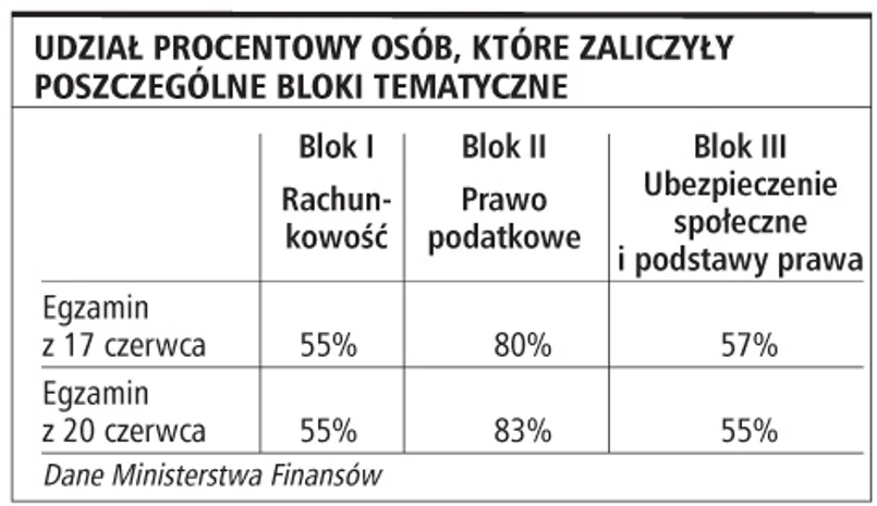 Pierwsze egzaminy w nowej formule sprawdzające wiedzę osób ubiegających się o certyfikat księgowy zdało 35 proc. kandydatów. Do egzaminów, które odbyły się 17 i 20 czerwca, przystąpiło 150 osób, z czego 53 uzyskały wynik pozytywny.