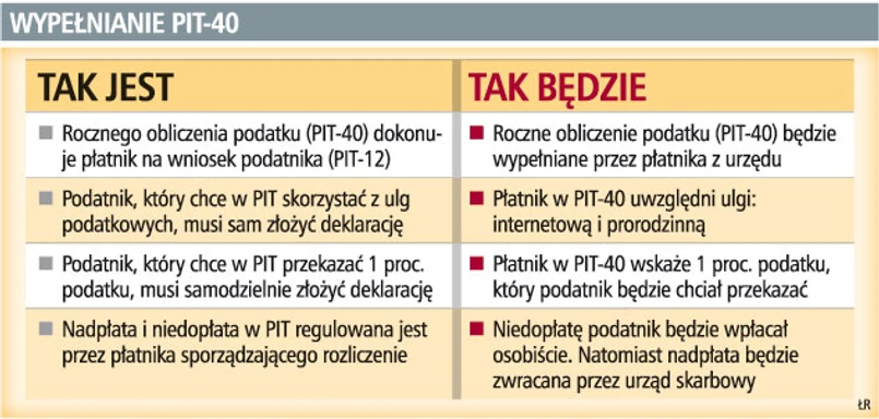Pewne zmiany zajdą też w obowiązkach w wypełnianiu PIT przez organy rentowe. Ministerstwo Finansów chce bowiem, aby organy rentowe roczne obliczenie podatku sporządzane na PIT-40A i PIT-11A przekazywały do organu podatkowego nie w formie papierowej, ale na nośnikach cyfrowych. Pozwoli to obniżyć koszty oraz ułatwi pracę organom podatkowym, które informacje sporządzone na nośnikach cyfrowych mogą umieścić w swoim systemie informatycznym, bez konieczności ręcznego wpisywania danych zawartych w PIT-40A lub PIT-11A.