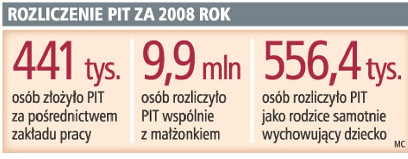 Pojawia się tu wątpliwość, czy małżonkowie lub samotni rodzice nie stracą preferencji w PIT, gdy zapomną złożyć oświadczenie pracodawcy. Otóż nie stracą. Magdalena Kobos z Ministerstwa Finansów wyjaśniła nam, że małżonkowie będą mogli rozliczać się wspólnie, jeśli zawiadomią swoich pracodawców, że chcą się rozliczyć samodzielnie.