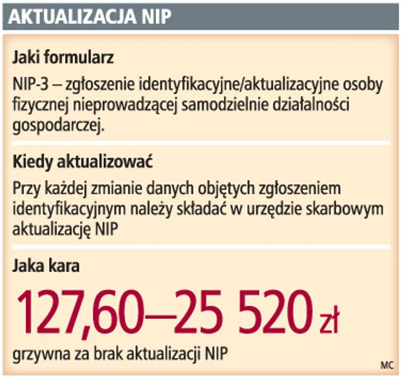 – Zmiany w którymkolwiek z tych elementów wiążą się z aktualizacją NIP (druk NIP-3) – stwierdza Katarzyna Bieńkowska, doradca podatkowy w Dewey & LeBoeuf Grzesiak.