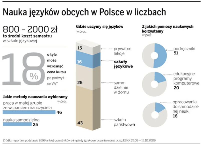 Według ekspertów stawka 22 proc. oznacza totalne załamanie się tego rynku. – Dane, które mamy, mówią o tym, że w ciągu ostatniego roku szkoły odczuły odpływ klientów na poziomie 25 proc. A niektóre, najczęściej te w biedniejszych rejonach, nawet do 50 proc. – mówi Magdalena Rowecka, wiceprezes zarządu PASE. I zaznacza, że mniejsze zainteresowanie kursami językowymi wynika z kryzysu – ludzie mają mniej pieniędzy.