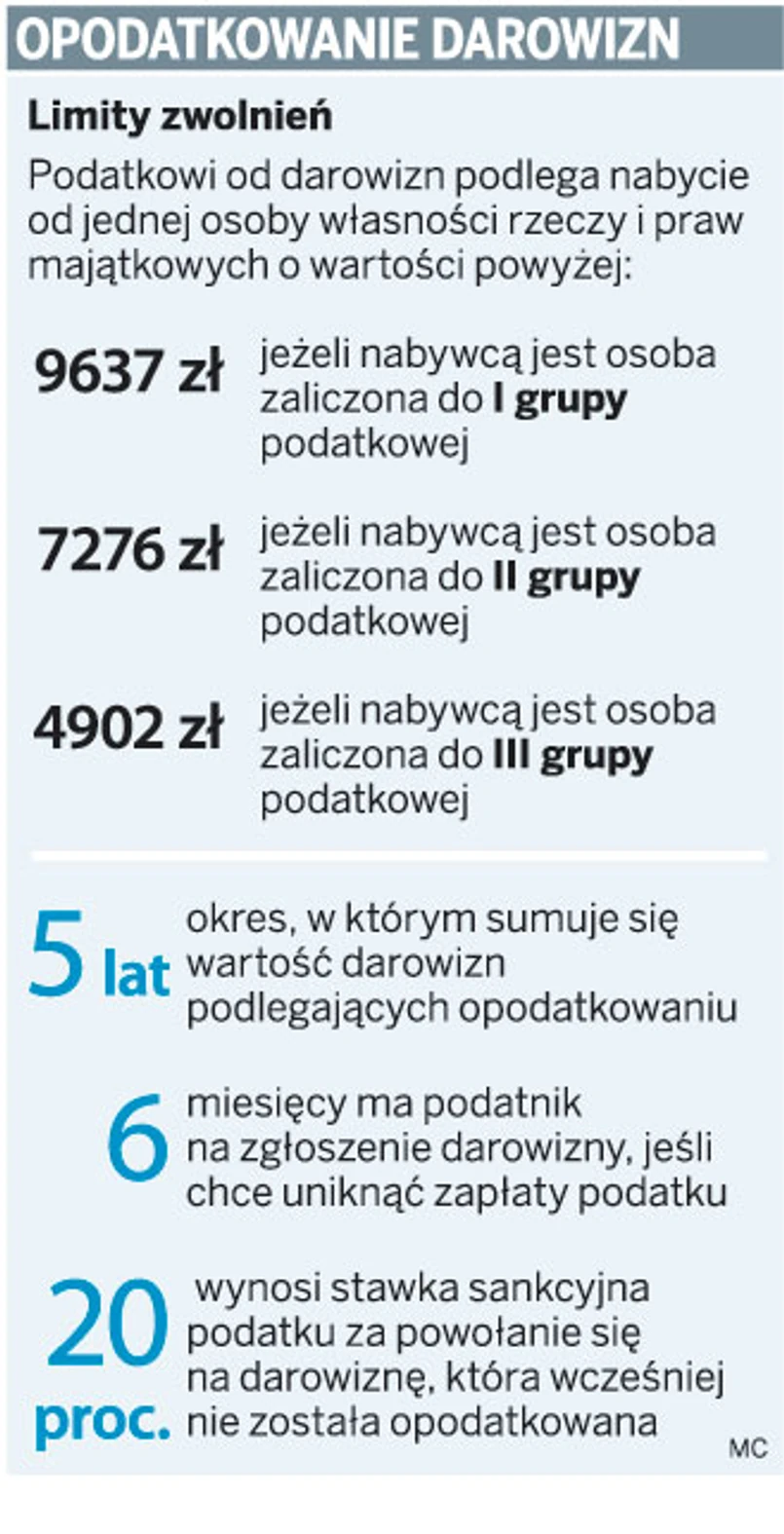– Ustawa ta uzależnia zarówno wysokość zobowiązania podatkowego, jak i wysokość kwoty wolnej od podatku, przede wszystkim od relacji między osobami przekazującymi i otrzymujący-mi – tłumaczy Aleksandra Chojnacka.