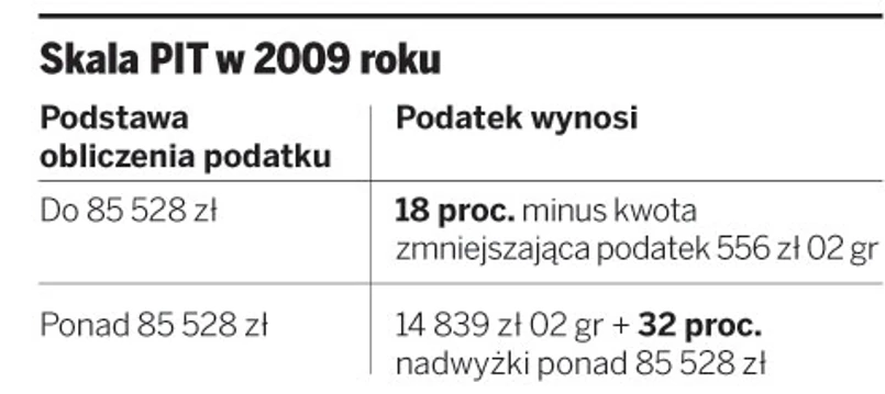 ● 20 proc. przychodów osiąganych w zakresie wolnych zawodów, a także przychodów z tytułu umowy najmu, podnajmu, dzierżawy, poddzierżawy lub innych umów o podobnym charakterze od nadwyżki ponad kwotę stanowiącą równowartość 4 tys. euro (13 510 zł w 2009 roku),