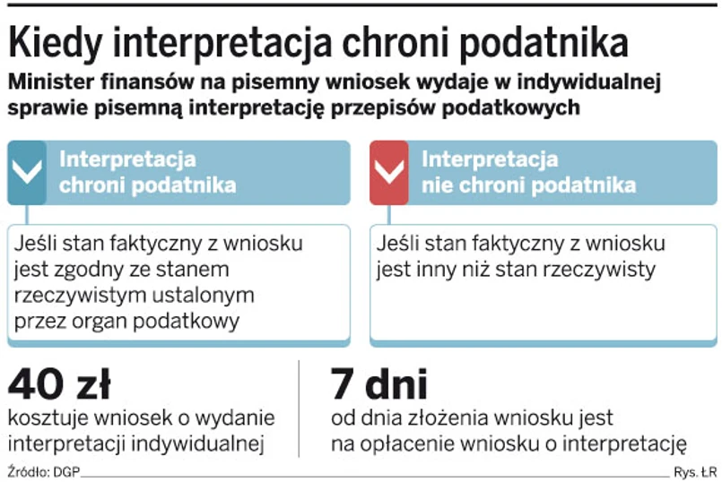 Podatnicy często i chętnie korzystają z możliwości uzyskania interpretacji indywidualnych, o czym świadczy liczba interpretacji oraz skarg sądowych na nie. Jeśli tylko pojawia się wątpliwość co do przepisu lub stanu faktycznego, wystarczy zapłacić 40 złotych i zapytać o zdanie ministra finansów. Pozytywne rozstrzygnięcie ministra pozwoli zwiększyć bezpieczeństwo rozliczeń podatnika. Tyle teoria. W praktyce jednak posiadanie interpretacji może nie dawać pełnej ochrony. Jak przyznaje dr Jowita Pustuł, doradca podatkowy z J. Pustuł, M. Przywara doradztwo podatkowe, interpretacja zapewnia bezpieczeństwo jedynie w sytuacji, gdy opisany we wniosku stan faktyczny jest zgodny z rzeczywistością.