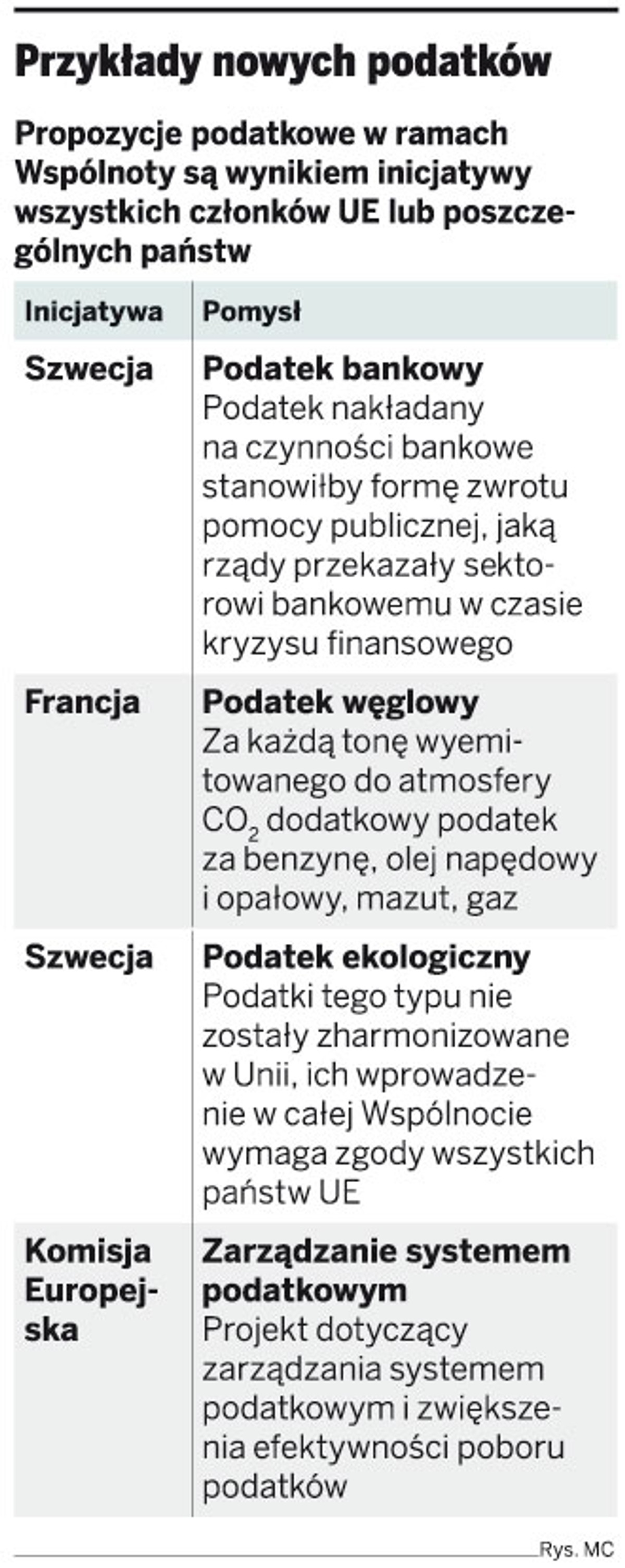 Wciąż pojawiają się pomysły wprowadzenia nowych podatków w ramach Unii. Przedstawiane są propozycje podatku ekologicznego, węglowego, bankowego. Wprowadzenie nowych obciążeń fiskalnych we Wspólnocie nie będzie proste.
