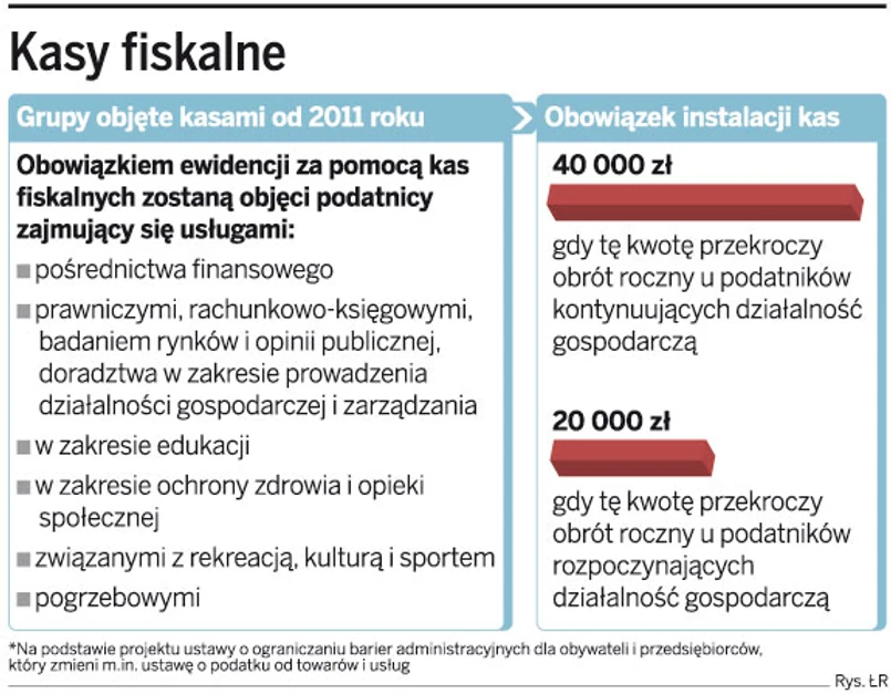 Od 2011 roku będą wprowadzone kasy fiskalne m.in. u lekarzy i prawników. Eksperci twierdzą, że wszyscy przedsiębiorcy powinni prowadzić taką ewidencję. Urzędy skarbowe wykorzystują zapisy z kas fiskalnych w kontroli podatku dochodowego.