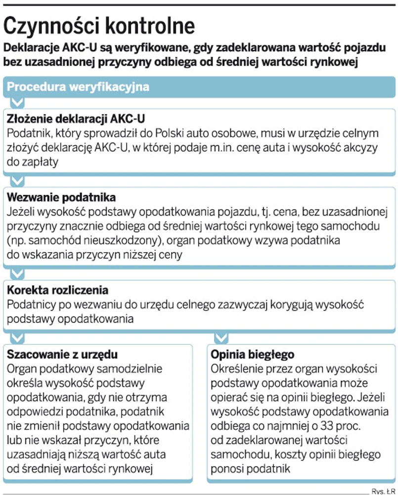 Zbigniew Liptak, doradca podatkowy w Ernst & Young, stwierdza, że tropienie przypadków zaniżania dla celów akcyzy wartości samochodów sprowadzanych z krajów Unii Europejskiej do Polski jest jednym z priorytetów kontroli celnych. Dlatego wszyscy sprowadzający samodzielnie samochody muszą się liczyć ze zwiększonym zainteresowaniem tych organów szczegółami wyliczenia podstawy opodatkowania.