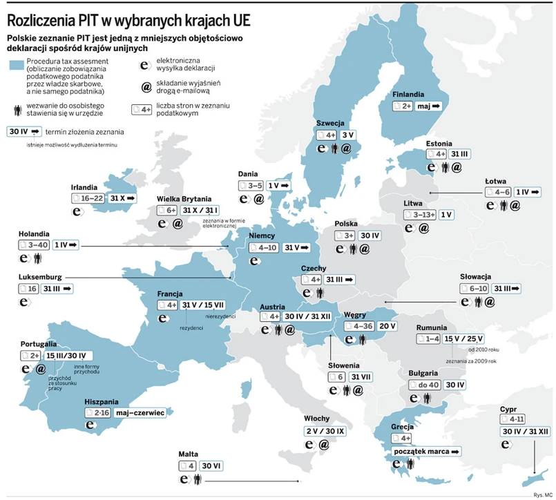 Polski system podatkowy jest skomplikowany i nieprzyjazny dla podatników, a zeznania podatkowe są zbyt obszerne. To powszechne opinie osób rozliczających się z fiskusem. Tymczasem fakty zdają się przeczyć tym opiniom. Po przeprowadzeniu analizy wspólnie z ekspertami PricewaterhouseCoopers okazało się, że wcale nie wypadamy tak źle na tle innych państw. Biorąc pod uwagę tylko obszerność rocznych zeznań podatkowych, najpopularniejszy u nas PIT-37 składa się tylko z trzech stron. Średnia w UE to 4–6 stron. Są też rekordziści. Przykładowo w Bułgarii roczne zeznanie wraz z załącznikami liczy 40 stron, w Hiszpanii od 2 do 16, w Holandii od 3 do 40, na Węgrzech od 4 do 36. Eksperci zwracają równocześnie uwagę, że część krajów UE zmierza w kierunku zupełnego zniesienia obowiązku składania zeznań rocznych, a nie tylko ich uproszczenia. Przykładowo w Słowenii podatnik jest zobowiązany do złożenia zeznania tylko w przypadku, gdy otrzyma od władz skarbowych kalkulację swojego zobowiązania przygotowaną na podstawie danych o dochodach zebranych przez urząd w trakcie roku. Podobna procedura obowiązuje w Wielkiej Brytanii.