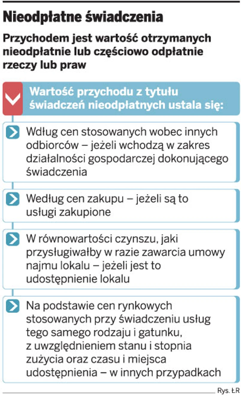 Na gruncie ustawy o CIT istnieją przepisy nakazujące do przychodów podatnika zaliczać wartość świadczeń otrzymanych nieodpłatnie lub częściowo nieodpłatnie. Nie znaczy to bynajmniej – jak podkreśla Michał Bator, doradca podatkowy w MDDP Doradztwo Podatkowe – że taki przychód pojawia się automatycznie. W wielu przypadkach firmy energetyczne lub telekomunikacyjne uregulowały kwestię wykorzystania cudzych nieruchomości i korzystanie to nie jest nieodpłatne. Ponadto do zastosowania tego przepisu wymagane jest nie tylko stwierdzenie, że podatnik otrzymuje jakieś świadczenie nieodpłatnie (częściowo nieodpłatnie), ale także dokonanie precyzyjnej i niebudzącej wątpliwości wyceny wartości takiego świadczenia.