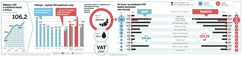 Dziennikarze „DGP” przygotowali raport na temat konsekwencji działań rządu. Już sama podwyżka VAT o jeden punkt procentowy spowoduje wzrost cen żywności. Będzie on niewielki, np. litr mleka zdrożeje o niecałe 10 gr.