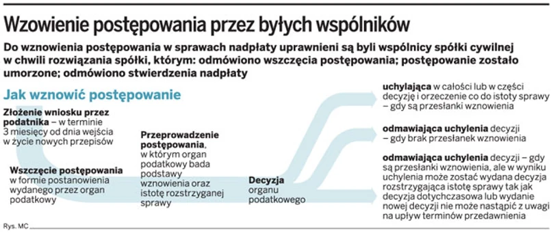 – Ważne tylko, by jednoznacznie wyraził żądanie wznowienia postępowania, precyzując, jakiego wniosku dotyczyło i jaką decyzją je zamknięto, oraz wskazał, że w chwili rozwiązania spółki cywilnej był jej wspólnikiem – wylicza Andrzej Zubik.