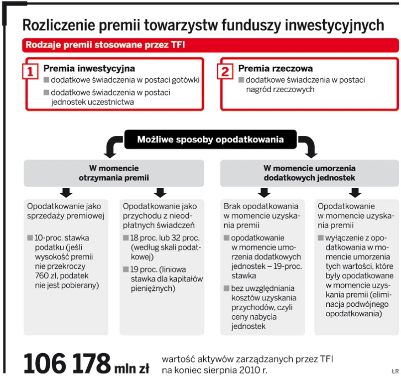 Towarzystwa Funduszy Inwestycyjnych (TFI), aby uatrakcyjnić ofertę sprzedażową, organizują akcje promocyjne i wprowadzają tzw. premie za lojalność uczestnictwa w funduszu. Premie te polegają na: przyznaniu dodatkowych jednostek uczestnictwa, wypłacie gotówki albo też przyznaniu innej nagrody rzeczowej.