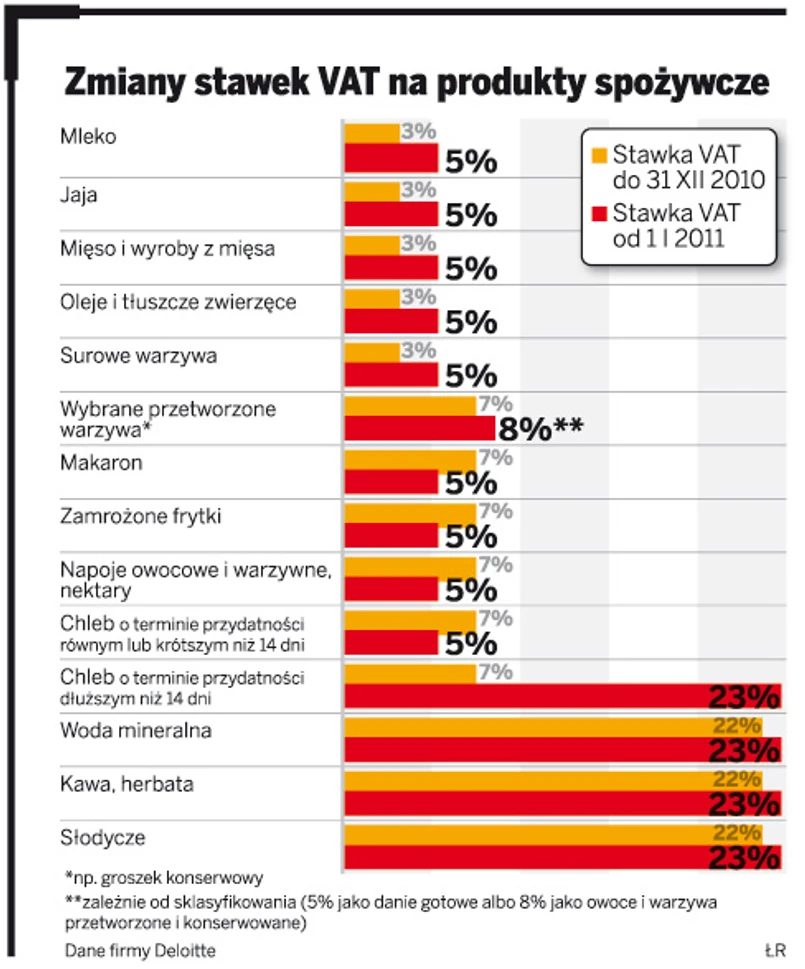 Zdaniem ekspertów z firmy Deloitte w związku z tymi zmianami przedsiębiorcy z branży spożywczej mogą mieć kłopoty ze stosowaniem prawidłowych stawek VAT. To w dalszej perspektywie może prowadzić do sporów z fiskusem.