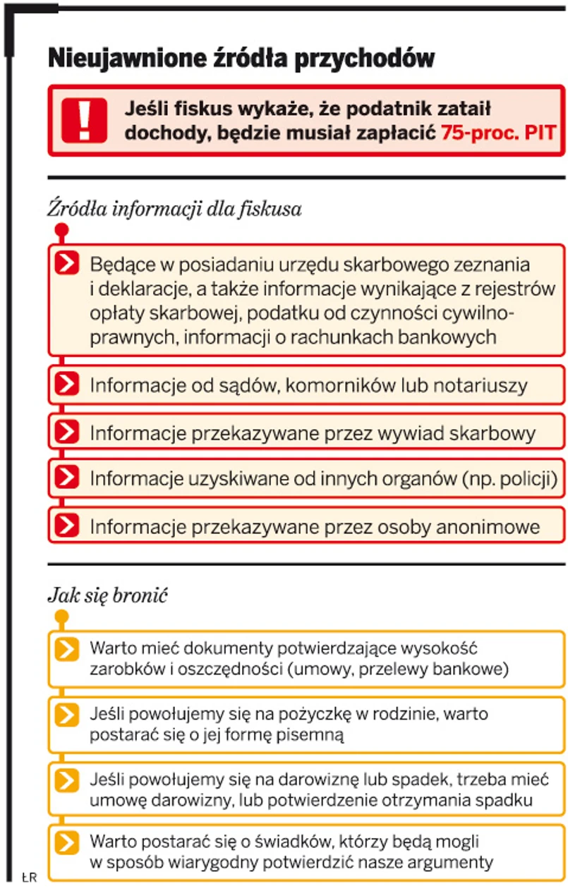 Jeśli udowodni on, że przychód pochodzi z nieujawnionych źródeł, może zastosować ryczałtową stawkę 75-proc. (tak ostatnio uznał NSA w wyroku z 14 września 2010 r., sygn. akt II FSK 1193/10).