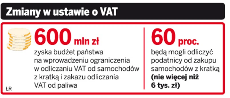 Resort finansów przeanalizował jednak straty budżetowe i postanowił zmienić tę sytuację, wprowadzając ograniczenia, na które zgodziła się już we wrześniu Komisja Europejska, a teraz rząd. Tylko na zakazie odliczania VAT od paliwa budżet państwa zyska 600 mln zł.