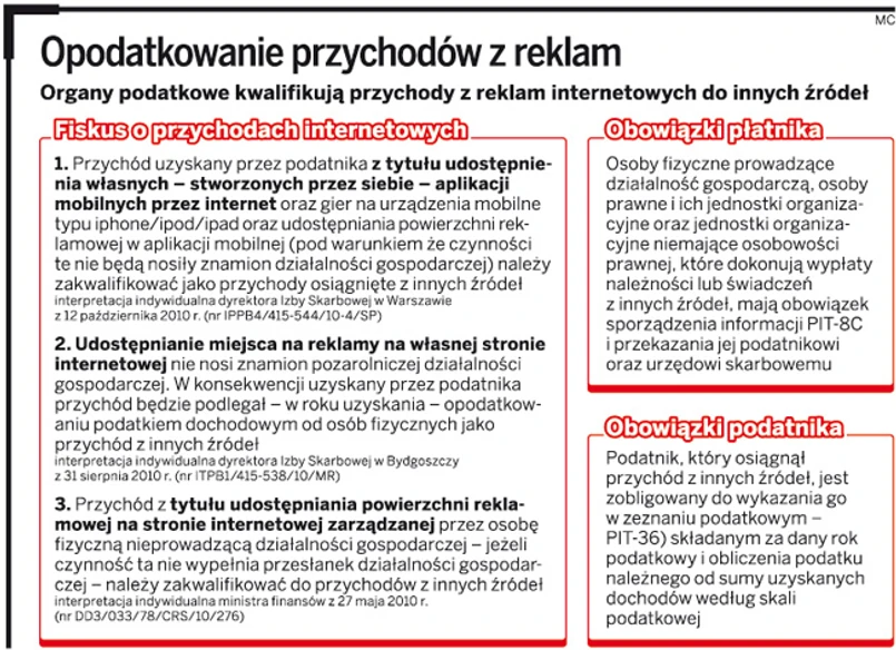 Również Magdalena Golińska, młodszy konsultant podatkowy w ECA Wójciak i Partnerzy, zwraca uwagę, że osoba fizyczna, która prowadzi swoją stronę internetową w celach innych niż zarobkowe i umieszcza na nich płatne reklamy, zobowiązana jest do zapłaty