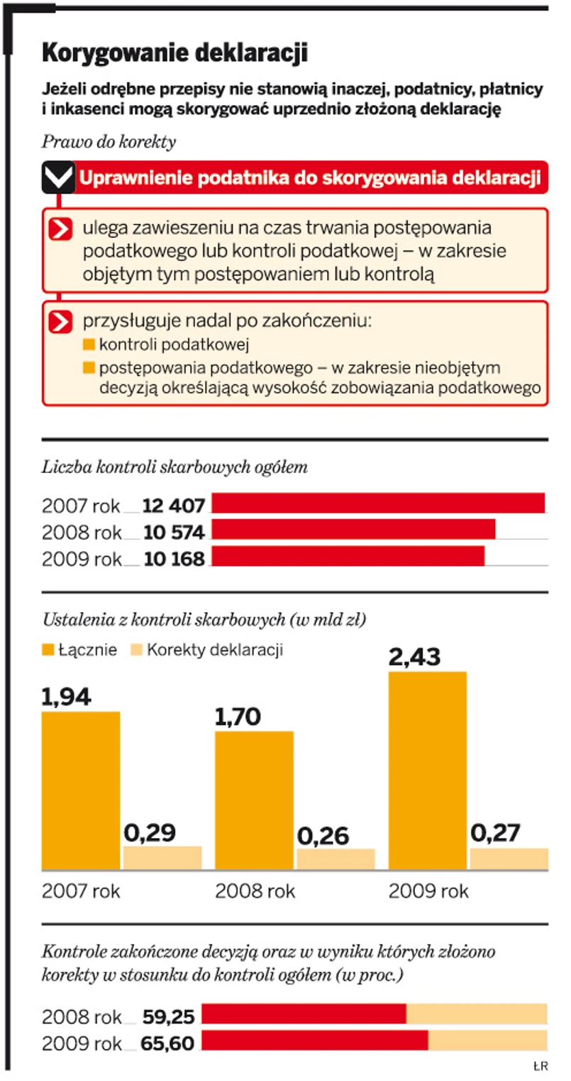 prawo do złożenia korekty deklaracji podatkowych również po zakończeniu kontroli podatkowej prowadzonej przez urząd skarbowy jest rozwiązaniem potrzebnym i stosunkowo nowym. Zostało wprowadzone po to, by przedsiębiorca, który pomylił się w rozliczeniach i uznaje swój błąd, mógł w miarę bezboleśnie go naprawić.