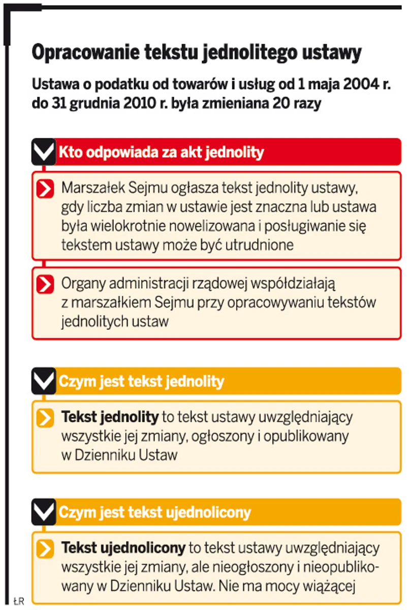 Najlepiej byłoby, aby teksty jednolite ustaw uchwalane były przy każdej ich nowelizacji, gdyż oszczędziłoby to podatnikom trudu sięgania do nieoficjalnych opracowań oraz dokonywania własnych poprawek do oryginalnego tekstu.