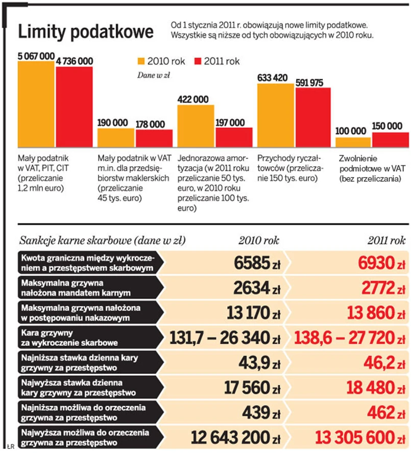 1 stycznia 2011 r. minimalne wynagrodzenie wzrosło z 1317 zł do 1386 zł miesięcznie. Wykroczenie skarbowe jest czynem zabronionym przez kodeks pod groźbą kary grzywny określonej kwotowo, jeżeli kwota uszczuplonej lub narażonej na uszczuplenie należności publicznoprawnej albo wartość przedmiotu czynu nie przekracza pięciokrotnej wysokości minimalnego wynagrodzenia w czasie jego popełnienia, tj. 6930 zł.