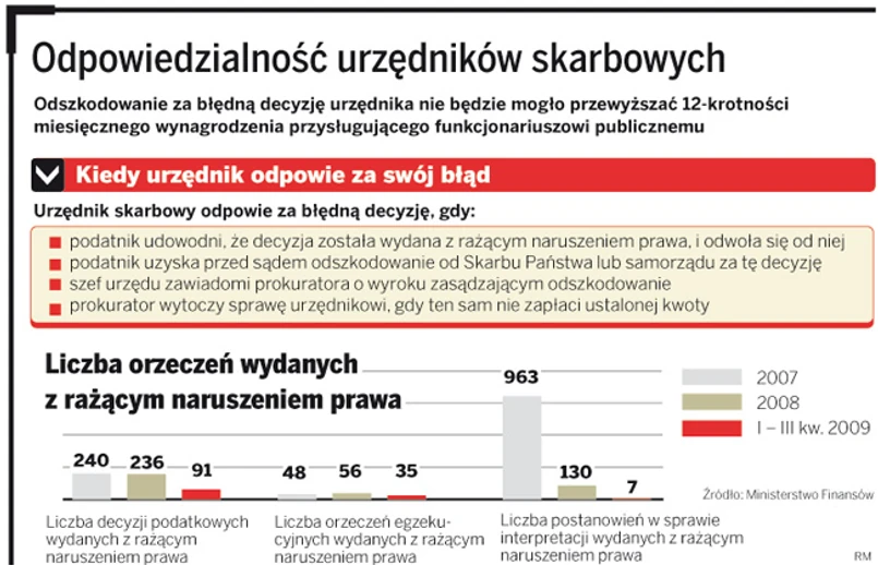Urzędnicy, którzy wydadzą decyzję z naruszeniem prawa, poniosą odpowiedzialność finansową. Sankcja ta dotknie także urzędników skarbowych. Czy słusznie?