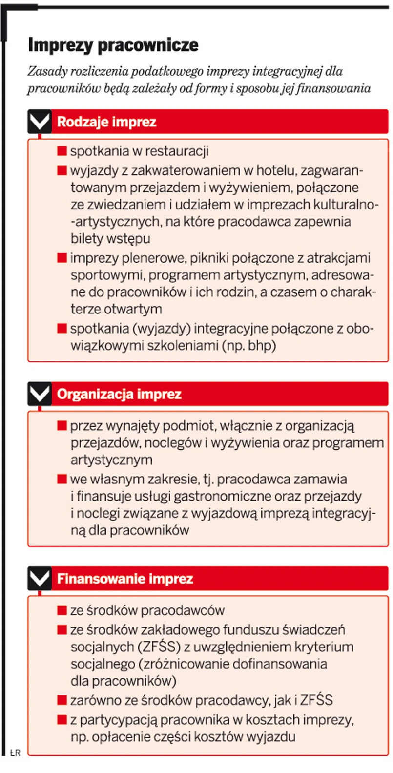 świadczeń pracownikom przez pracodawcę rodzi wiele wątpliwości w zakresie ich opodatkowania. Uczestnictwo pracownika w imprezie integracyjnej trudno uznać za przychód ze stosunku pracy. Jest to element życia zawodowego, mający na celu integrację załogi, który może nawet nie mieć waloru czysto rozrywkowego – dla niektórych pracowników uczestnictwo wiąże się wyłącznie z pewnym obowiązkiem. Aktualne stanowisko organów podatkowych w kwestii rozpoznawania przychodu u pracowników w związku z zaproszeniem do udziału w firmowej imprezie integracyjnej stanowi próbę coraz szerszego ujmowania kategorii nieodpłatnych świadczeń uzyskiwanych od pracodawcy. Podejście to zaczyna nabierać cech absurdu.