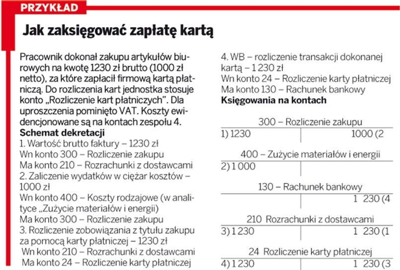 Zapłata dokonana pracowniczą kartą płatniczą może być ujęta na koncie rozliczeniowym