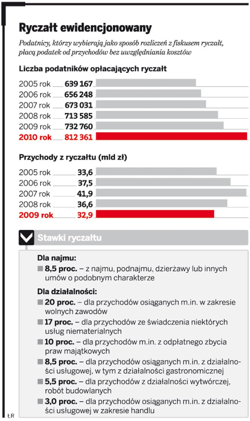 ryczałt od przychodów ewidencjonowanych w porównaniu z rozliczeniem za 2009 rok.