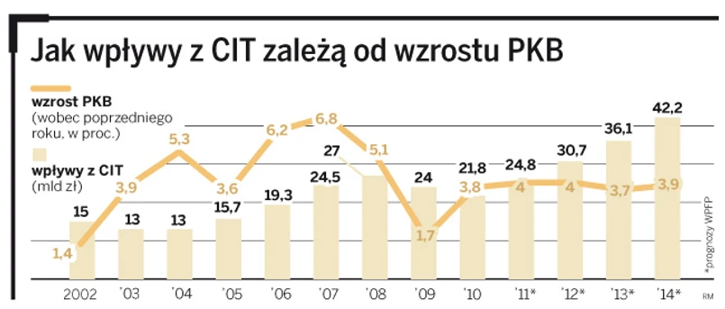 Rząd planuje gwałtowny wzrost wpływów z CIT do 2014 roku. Taką prognozę, która została wpisana do Wieloletniego Planu Finansów Państwa (WPFW), część analityków uważa za nierealną. Opozycja podejrzewa nawet, że rząd myśli o podwyżce stawek podatku. Stąd zakłada tak duży wzrost.